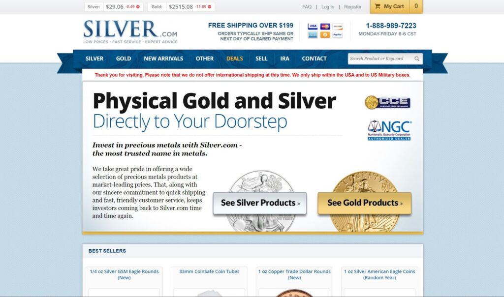 Silver.com specializes in offering a broad range of silver products at competitive prices. This website is an excellent choice for those looking to invest in bullion, such as 2 oz silver rounds or 999 fine silver bars.