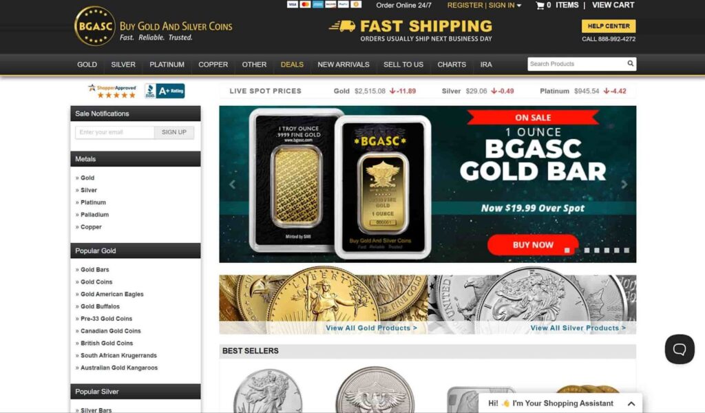 BGASC is a trusted source for gold coins and silver bullion. Their offerings include American silver eagle coins and 9999 pure silver bars. BGASC is known for fast shipping and reliable customer service, making it a go-to site for those looking to buy silver online.