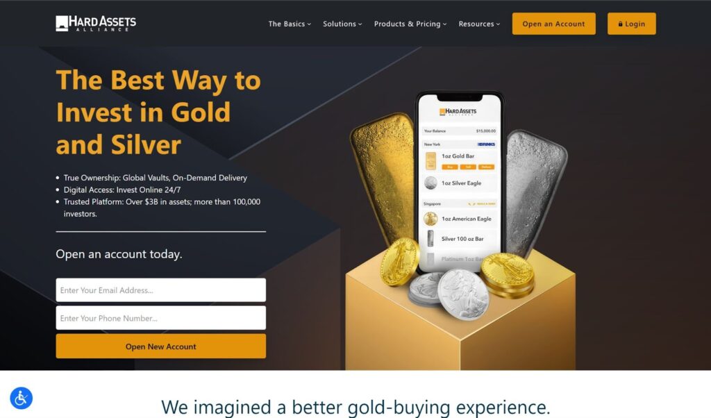 Hard Assets Alliance offers a convenient platform for buying, storing, and selling gold and silver. Their inventory includes 999 pure silver bars, 2 oz silver rounds, and other popular products. The platform’s user-friendly interface and transparent pricing make it a solid choice for investors of all levels.