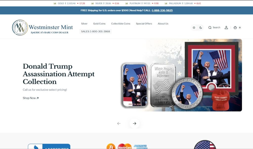 Westminster Mint offers a wide selection of silver bullion bars and modern silver bullion coins. Known for their high-quality 999 fine silver and 9999 pure silver products, Westminster Mint is a reliable source for both collectors and investors. Their secure and insured shipping, combined with excellent customer service, makes them a trusted option for purchasing silver.