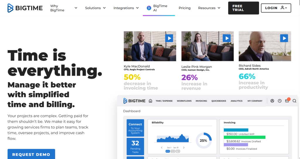 BigTime is a workflow management platform for professional service companies that require immediate insight to ensure long-term success. It can be described as the engine for the most renowned consulting firms around the globe to plan, budget, and track their most significant asset: time.