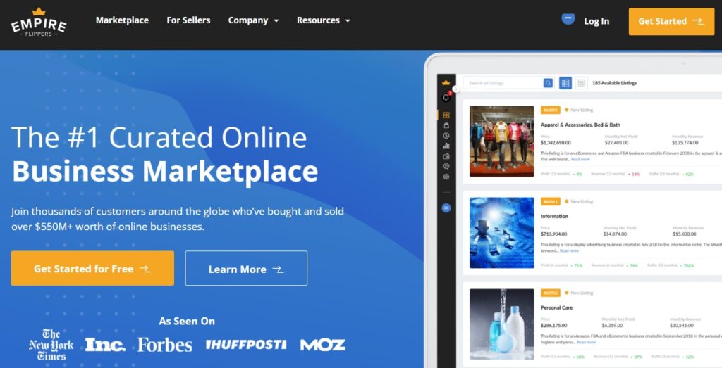 Empire Flippers operates as a premium website broker specializing in vetted, high-quality online businesses. The platform maintains strict listing standards and provides comprehensive support throughout the transaction process.