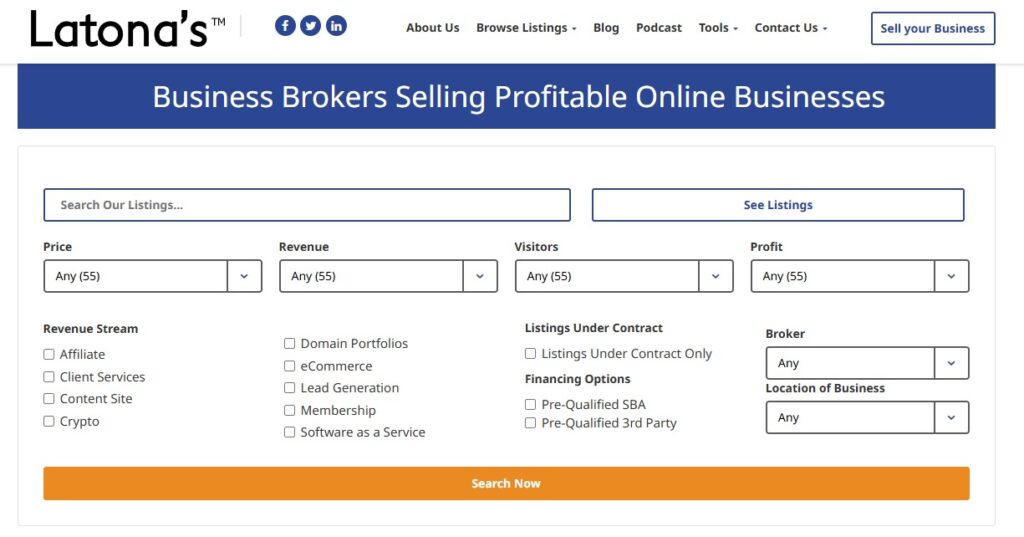 - Extensive filtering options by niche, revenue, and price