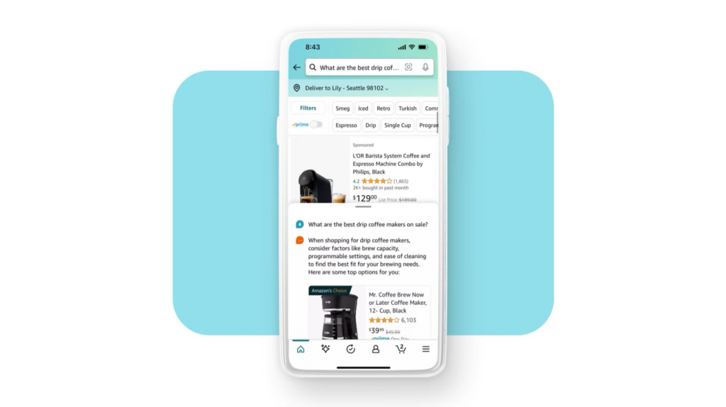 Embedded directly into the Amazon mobile app, Rufus is a generative AI assistant trained on Amazon’s vast catalog of product data, reviews, and specifications. It is designed to answer specific product questions—such as “Is this coffee maker easy to clean?”—by synthesizing thousands of customer reviews into a single answer.