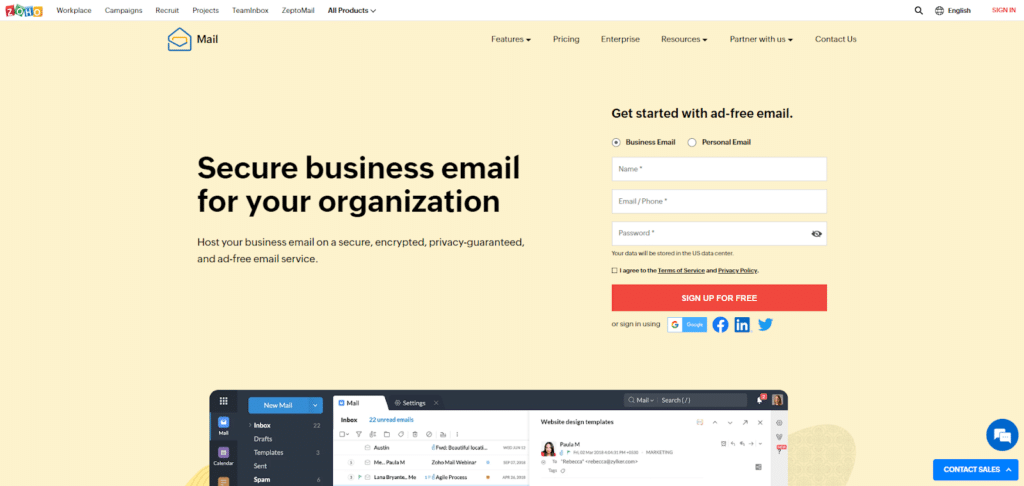 Zoho Mail has ideas for people, small businesses, and big businesses. Zoho Mail works well with other Zoho apps like Projects and CRM.