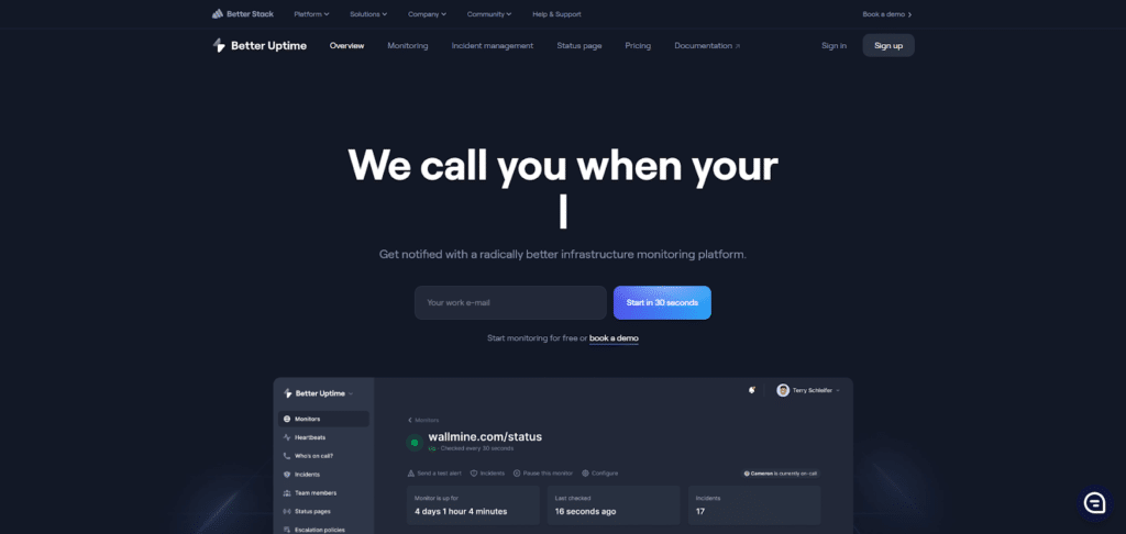 BetterUptime keeps track of and controls the uptime of websites and apps for businesses. It lets companies know immediately when a website is down or not running well.