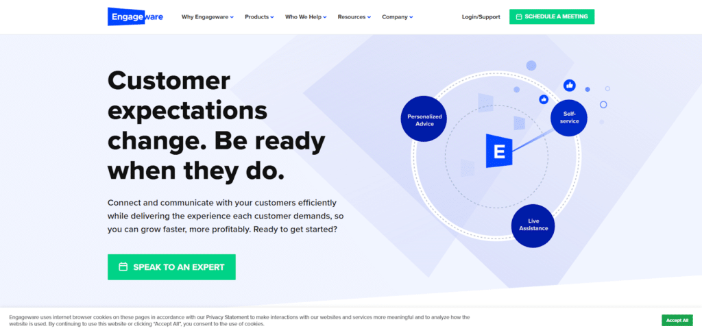 Engageware helps business improve how they interact with their customers. Its technology and skills help people find answers. Allows to find tools, and meet with experts. The experience is the same and works well across all platforms.
