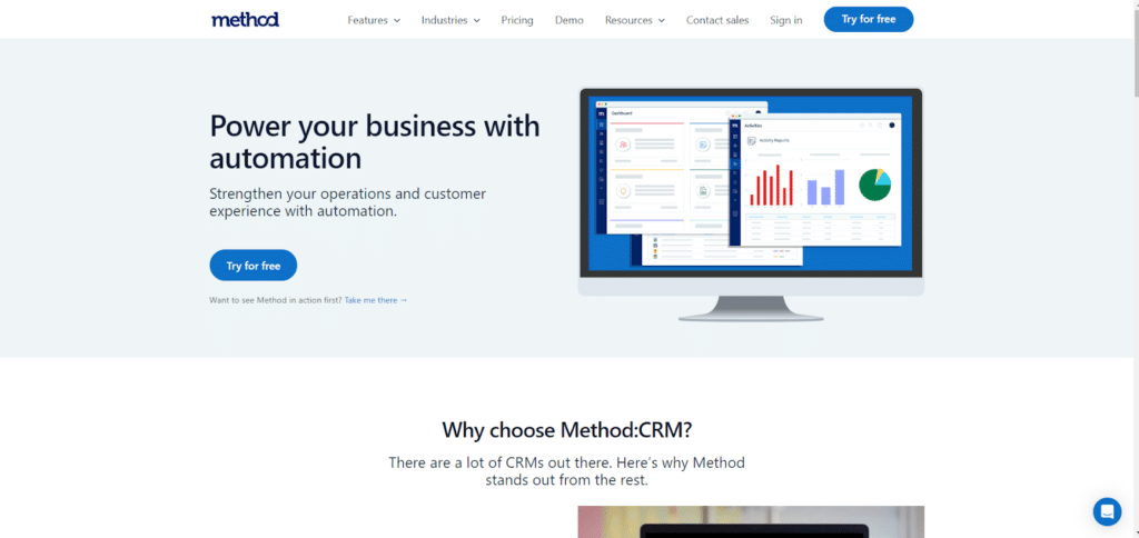 Method CRM keeps track of sales, customer service, and management. It runs in the cloud. It can keep track of contacts, leads, email marketing, billing, and more. Small and medium-sized businesses can use it.