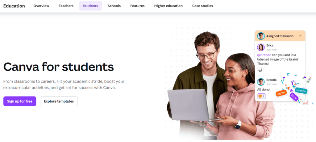 - Canva’s tools support academic success with premium templates, real-time collaboration, and classroom management features.