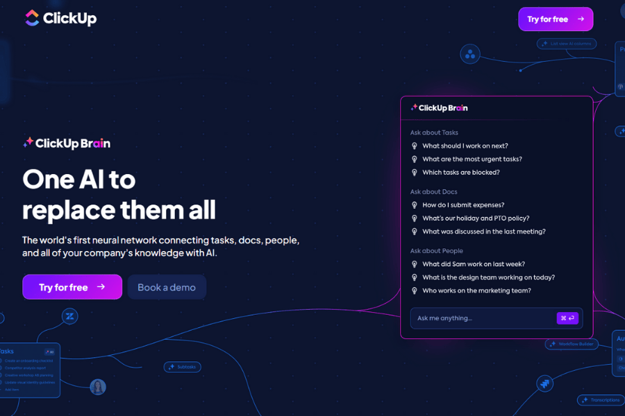 ClickUp Brain is an advanced AI-powered neural network integrated within the ClickUp productivity platform.