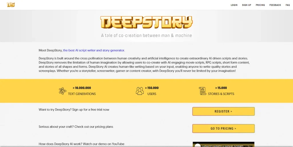 If your main goal is to make original, exciting stories, you might choose Deepstory AI. This tool is a good choice if you want a platform with lots of ways to change things that lets you write both long and short pieces. Deepstory AI could also be a good choice if you want a tool that learns and gets better over time.