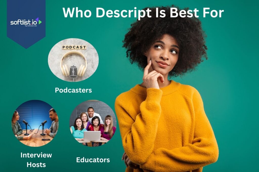 Descript suits creators whose stories are driven by speech. Podcasters, educators, interview/webinar hosts can rough-cut fast by editing the transcript instead of wrestling with waveforms or timelines. Beginners ramp quickly: delete tangents, move paragraphs, and publish clean audio with Studio Sound and auto-leveling. Teams benefit from collaboration and reviews.