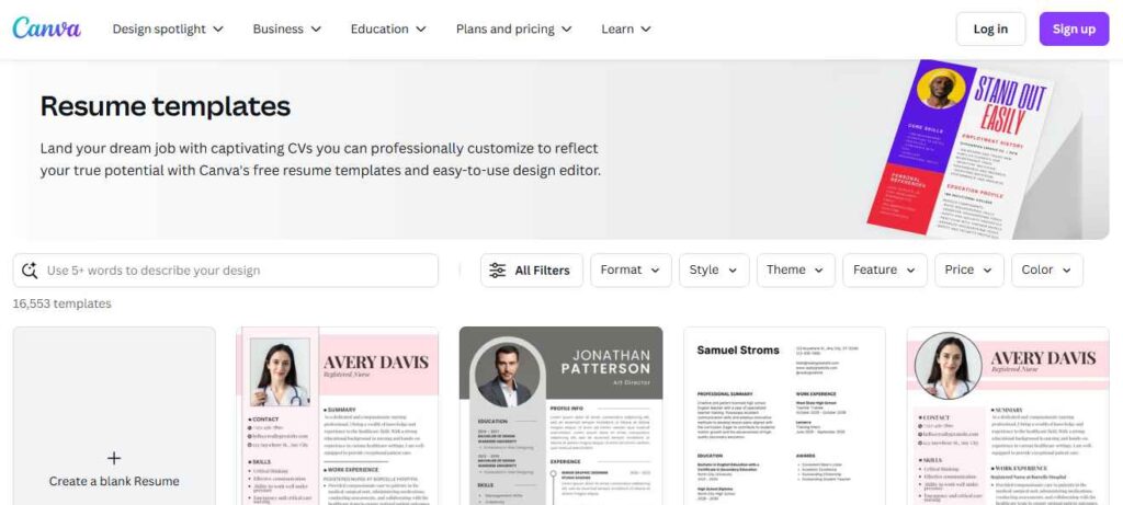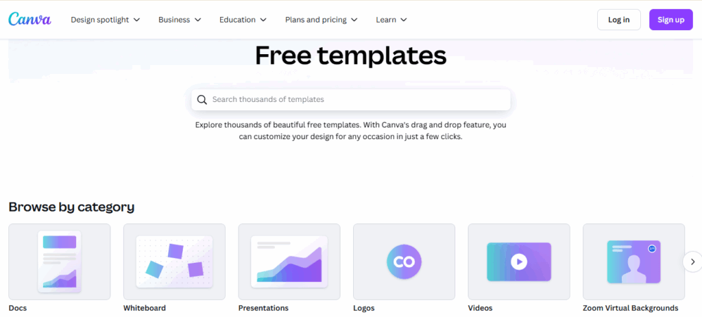 - Canva offers a wide range of professionally designed templates for social media, resumes, business branding, and more.