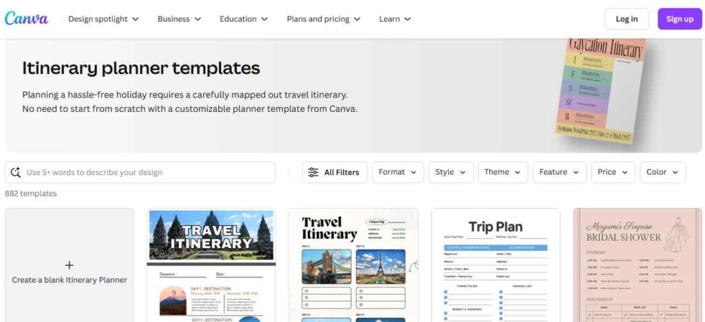 Browse Canva’s template library and filter by format, style, color, or theme. Start with a template that’s closest to your end goal and customize from there.