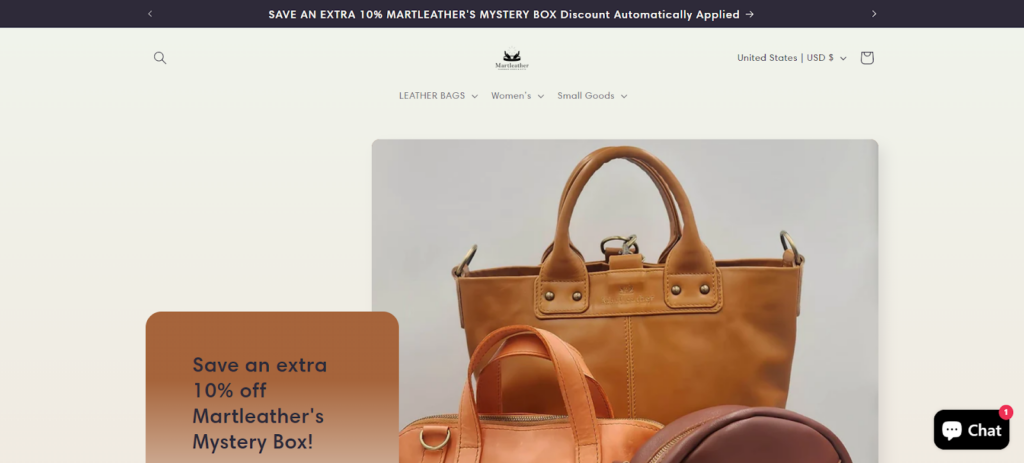 - Specializes in handmade, premium leather goods.