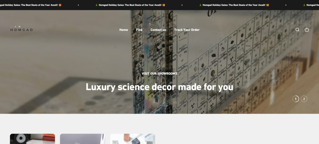 Homgad.com merges science and home décor into an exciting eCommerce concept. Operating for three years, it offers STEM-inspired products like acrylic periodic tables, appealing to educators, enthusiasts, and institutions.