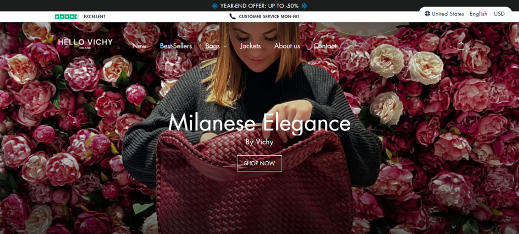 HelloVichy.com is an e-commerce business offering fashionable handbags to customers worldwide. The business combines dropshipping and traditional e-commerce for efficient operations and seamless customer service.