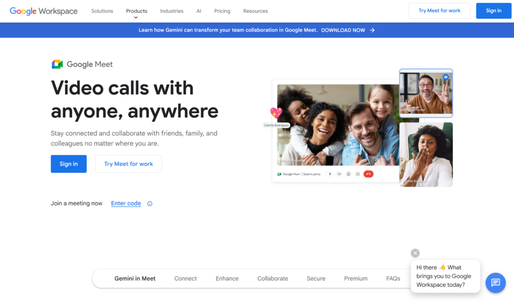 Google Meet delivers a clean, browser-based video calling experience. There are no downloads or fuss—just share a link and start talking. It integrates seamlessly with Gmail and Google Calendar, making scheduling effortless.