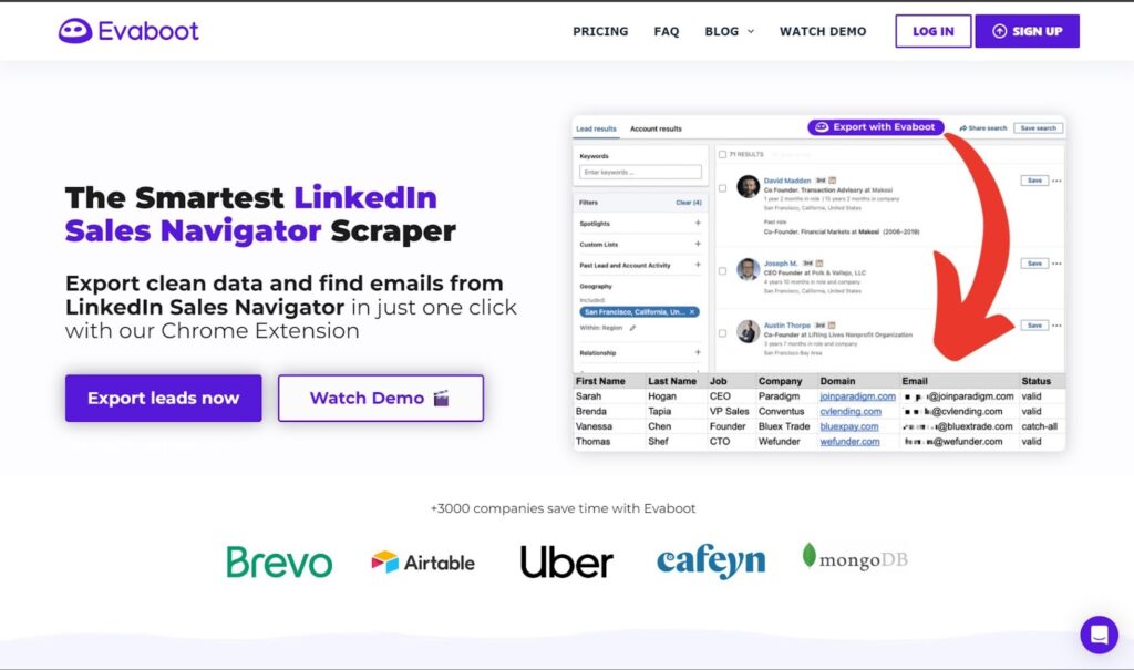 Evaboot is a specialized tool for extracting email addresses from LinkedIn Sales Navigator. It simplifies the process of pulling contact information and ensuring it’s accurate. Evaboot’s email verification feature ensures high deliverability, reducing bounce rates in your email campaigns.