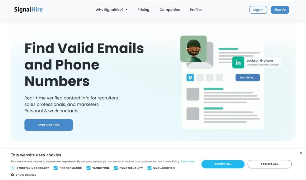 SignalHire is an all-in-one recruiting and lead-generation tool that helps you find emails, phone numbers, and social media profiles. It’s great for recruiters and sales professionals who need comprehensive contact data.