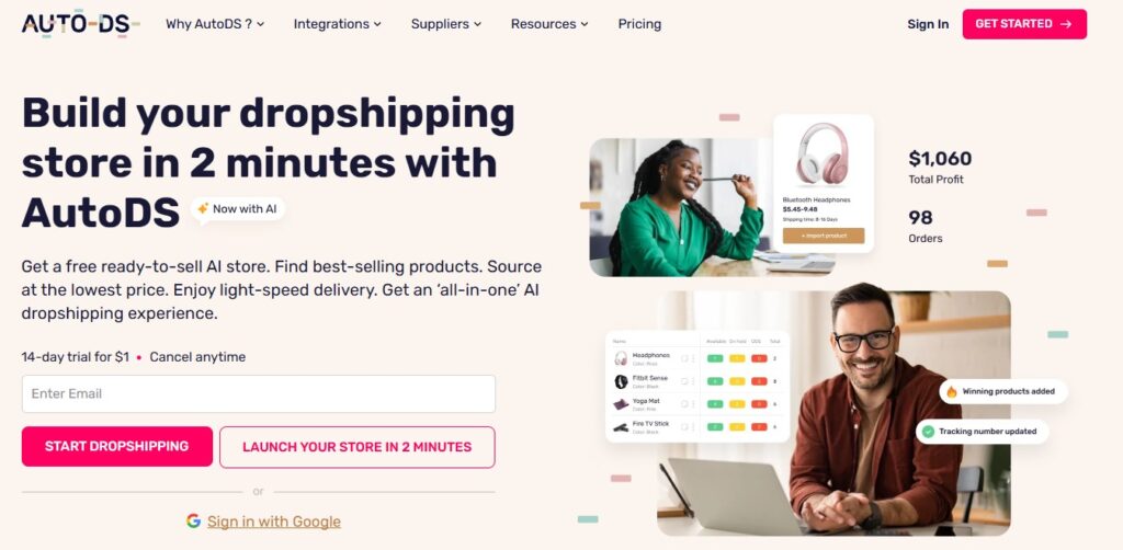 AutoDS showcases automated dropshipping supply chain management with product sourcing and inventory synchronization. The platform eliminates manual processes while maintaining supplier relationships and order fulfillment automation.