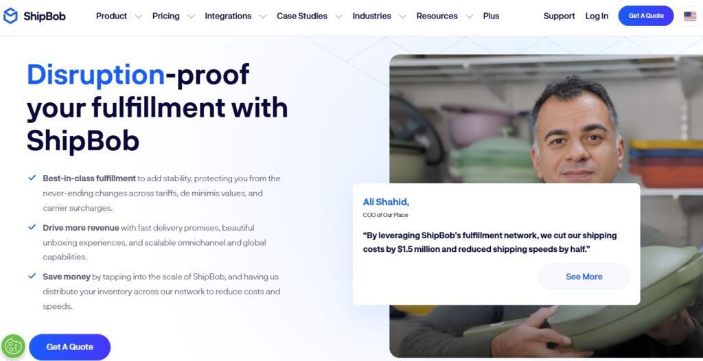 ShipBob offers third-party logistics services that demonstrate outsourced fulfillment benefits for growing businesses. Their distributed fulfillment network reduces shipping costs and delivery times while providing scalable warehousing solutions.