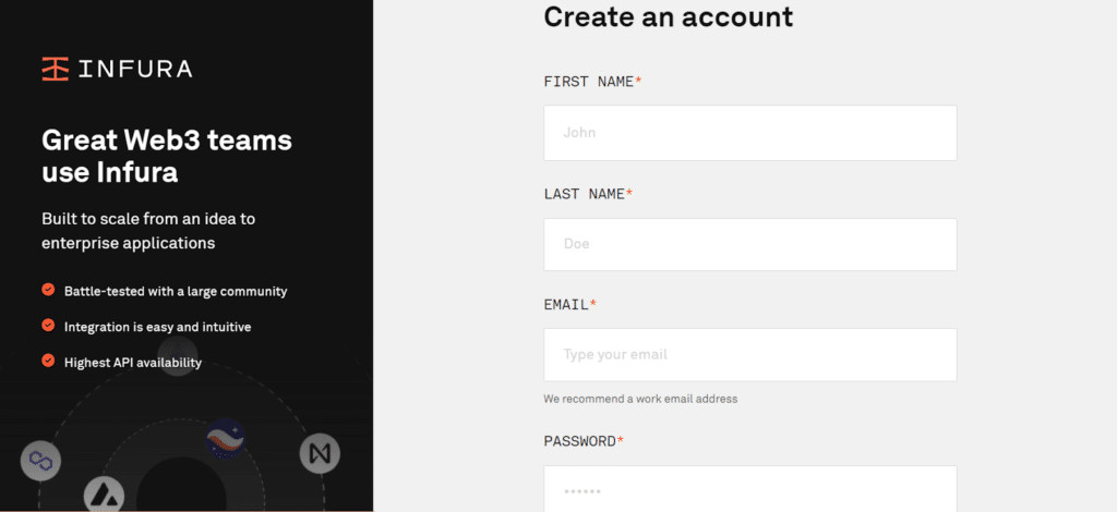 It is an infrastructure provider that offers scalable, reliable access to the Ethereum blockchain and other networks, helping developers interact with the blockchain without needing to maintain their own nodes. To sign up, simply visit the website, create an account, and authenticate your credentials. Once you’re logged in, you’ll gain access to their suite of tools and APIs, allowing you to start integrating blockchain functionality into your application.