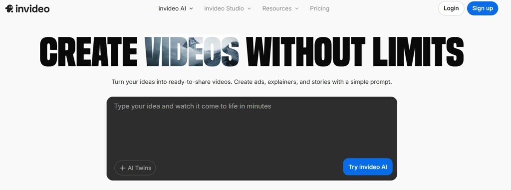 To get started, open your web browser and navigate to the official InVideo website at InVideo.io. This is where you can access all of InVideo’s powerful tools and features. The website will serve as your portal to creating, editing, and managing video projects.
