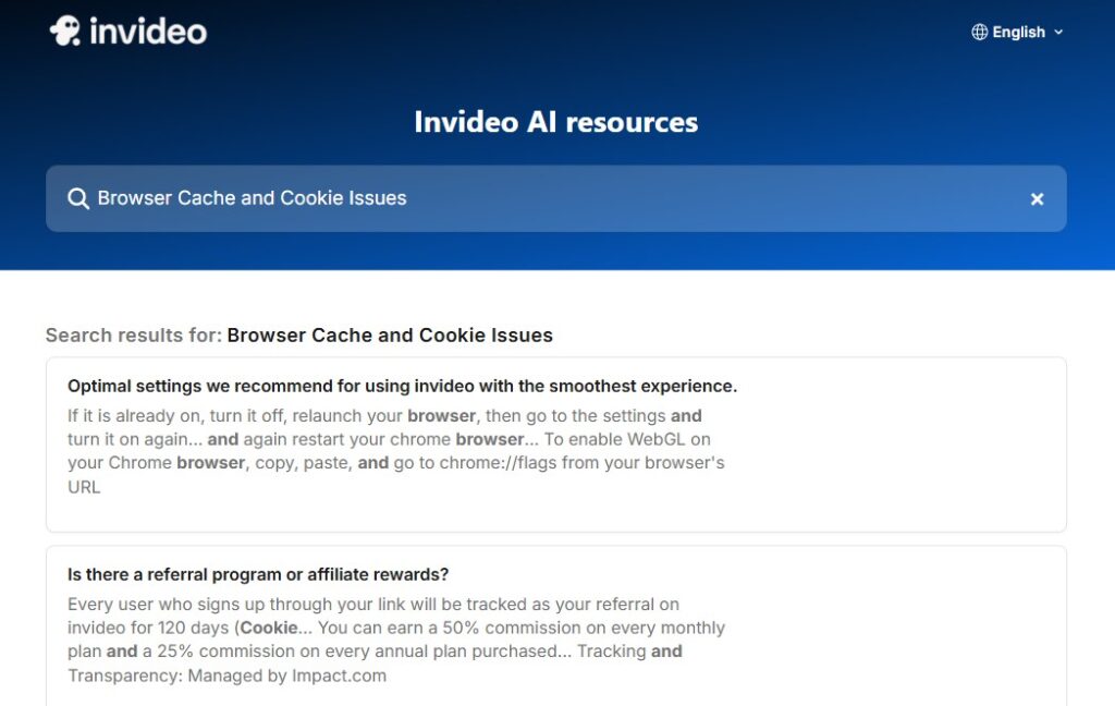 The Help section is your first stop for troubleshooting and learning more about InVideo’s features. It also provides solutions for common InVideo Login issues, such as password resets or multi-device access. It contains a variety of resources, including: