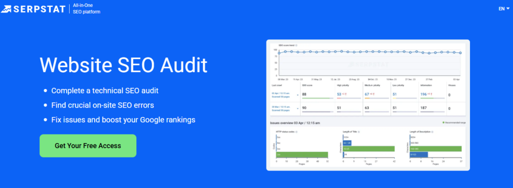 - Serpstat offers powerful technical SEO audits at a fraction of the cost of premium tools.
