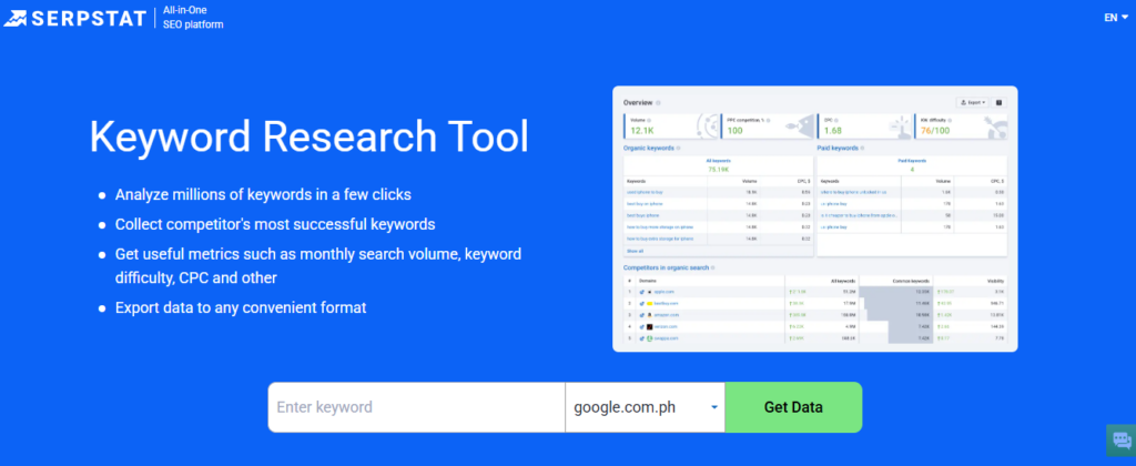 Serpstat offers a powerful keyword research tool beyond the basics, making it ideal for content planning and SEO strategy. Its standout features, like keyword clustering and search suggestions, make it a solid choice for marketers focused on user intent.