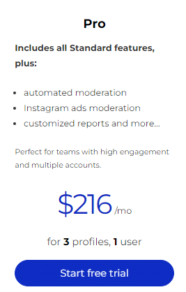 2. Pro ($76 /mo. for 3 Profiles, 1 User) ($63.31 /mo. for 3 Profiles, 1 User Billed Annually)