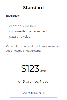 1. Standard ($31 /mo. for 3 Profiles, 1 User) ($25.82 /for 3 Profiles, 1 user Billed Annually)