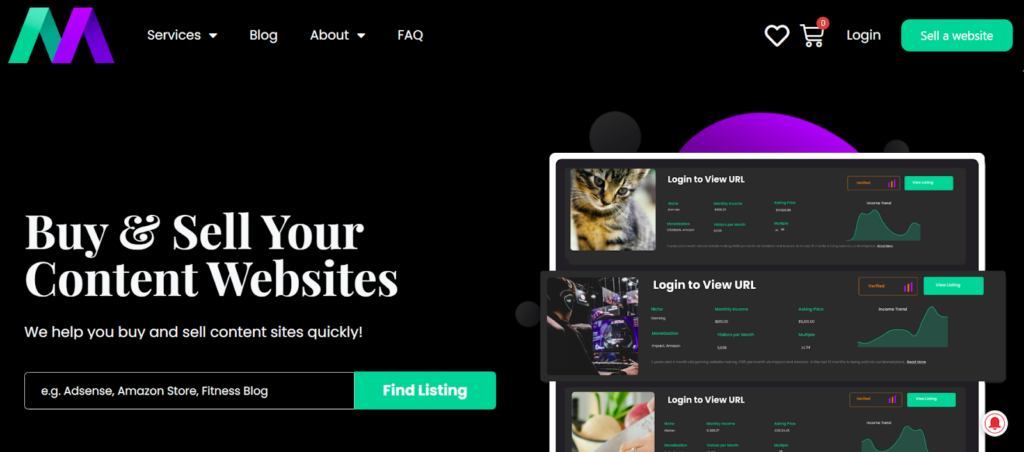 - Diverse Listings: Offers a wide range of digital assets, including content sites, e-commerce stores, SaaS businesses, and domains.