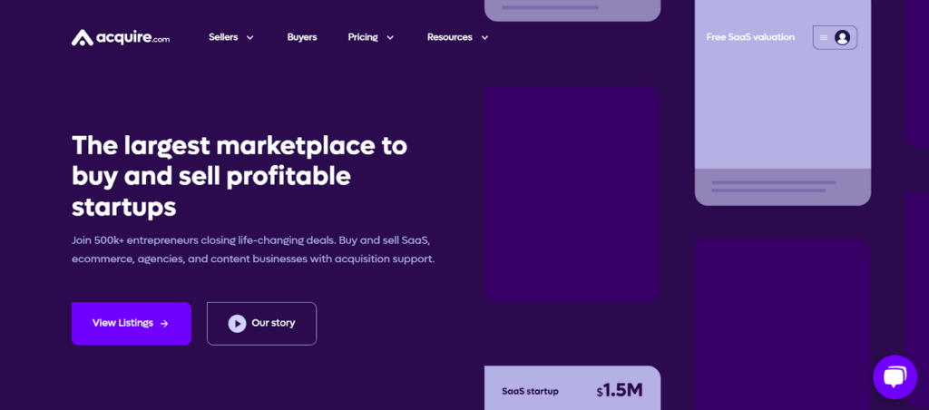 - Startup-Focused Listings: Primarily caters to SaaS, e-commerce, and app-based businesses.