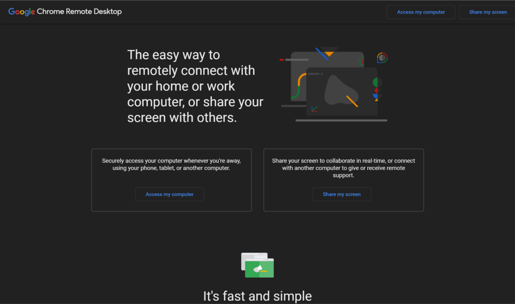 Chrome Remote Desktop offers a simple, browser-based solution for remote access to your desktop. It integrates directly with the Google Chrome browser, making it easy to connect to Windows and Mac computers.