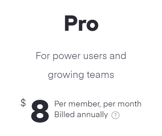 8 USD per member, per month if billed annually