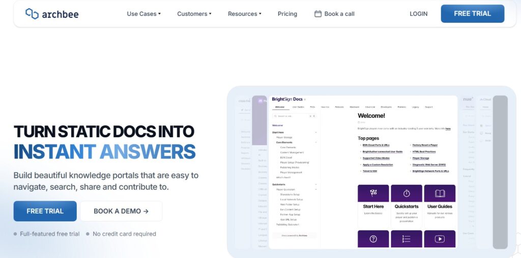 Archbee specializes in technical product documentation, handling API docs and developer guides more effectively than Notion’s general-purpose formatting. It integrates directly with development workflows for engineering-heavy product teams.