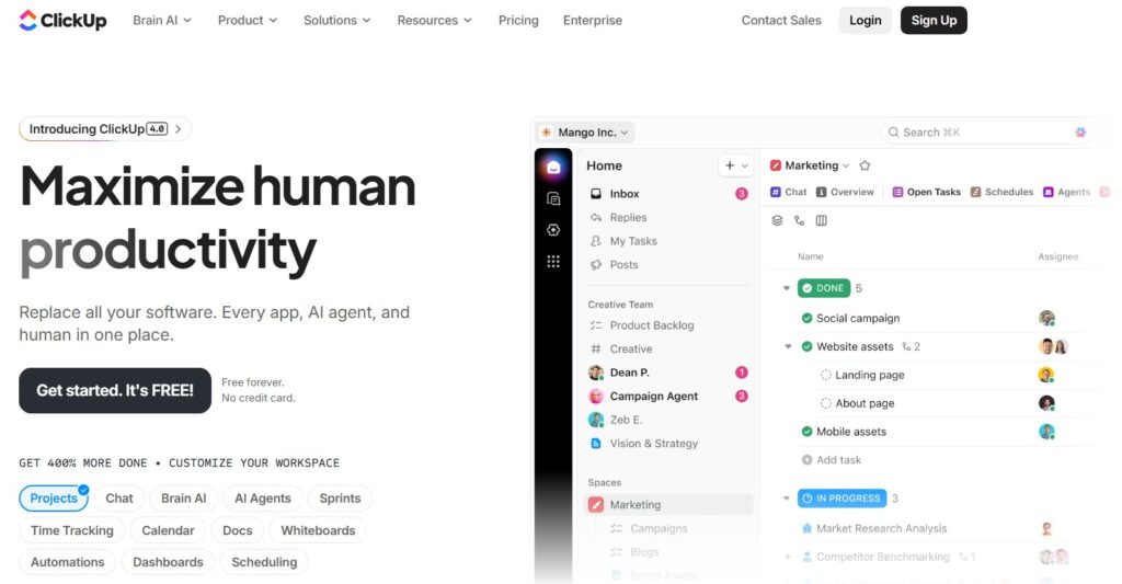 ClickUp combines document management and task tracking in a single platform, simplifying the OS for smaller teams. It offers a middle ground between specialized tools and all-in-one complexity.
