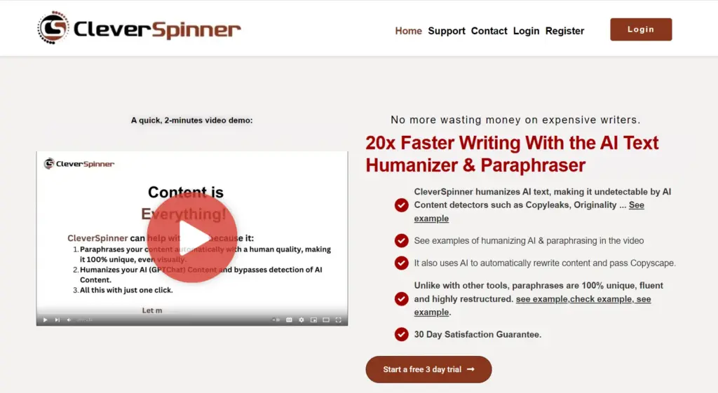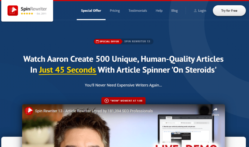 CleverSpinner is an AI-powered article rewording tool generator that is one of the most affordable on the market. You can create a unique, Spin Rewriteresque article with just a single click. The tool analyzes context to understand how words and phrases have been used before rewriting at various levels, from word to sentence to paragraph level.