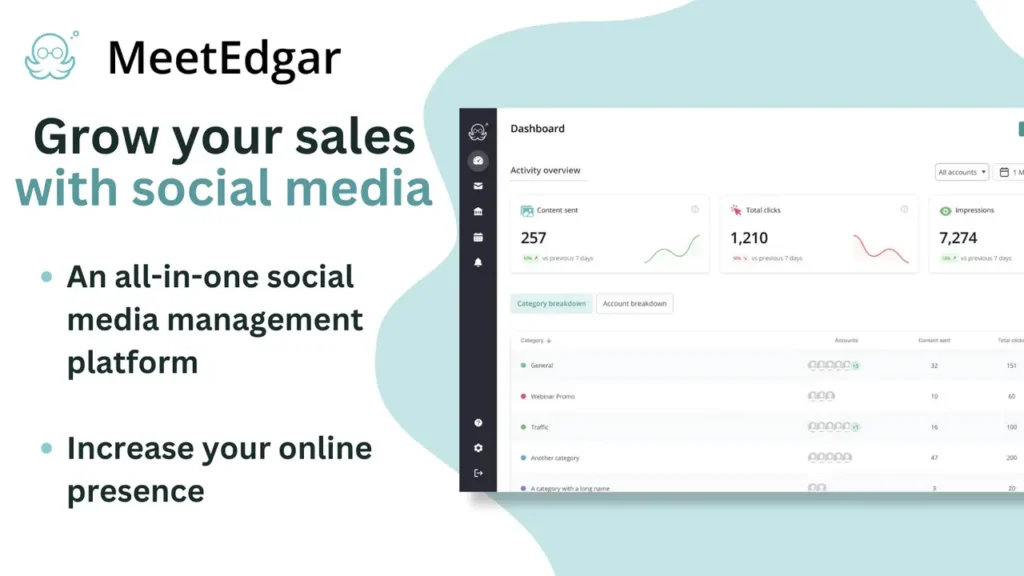 MeetEdgar is a simple, AI-powered, and easy-to-learn social media management tool that helps freelancers, entrepreneurs, small businesses, and social media teams create, schedule, publish, and automate content daily.