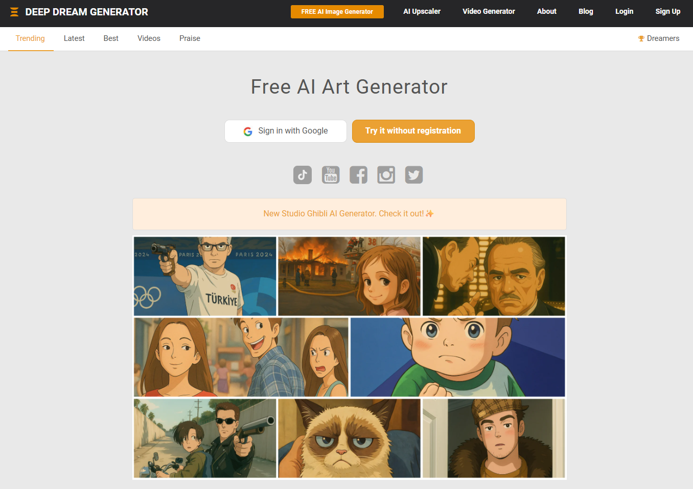 DeepAI is a ai art generator that is quickly gaining popularity. With its machine learning algorithm, the deep dream generator of DeepAI can create a truly unique art style. DeepAI is the perfect tool for artists who want to experiment with ai art. During its conception in 2016, the founders of DeepAI wanted it to be open-source software so others could use it freely. It provides various tools that you can utilize to construct lifelike visuals.