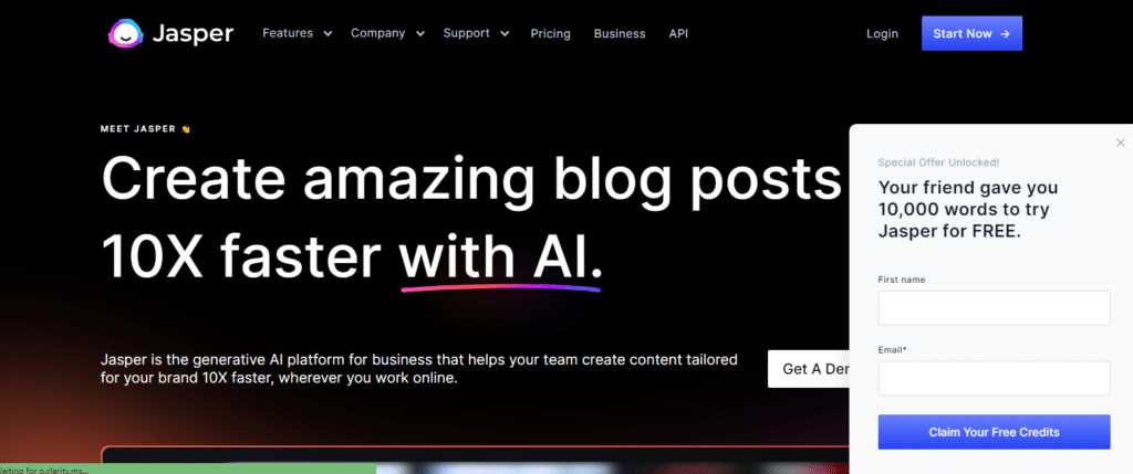 Jasper is a powerful generative AI platform for businesses, allowing teams to create brand-specific content ten times faster, regardless of their digital workflow.