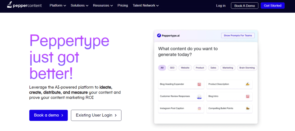 Peppertype is a content generation tool that produces high-quality, fresh content for all your needs. With Peppertype, you’ll never have to worry about Peppertype ideas or topics for your blog, website, social media posts, or videos again!