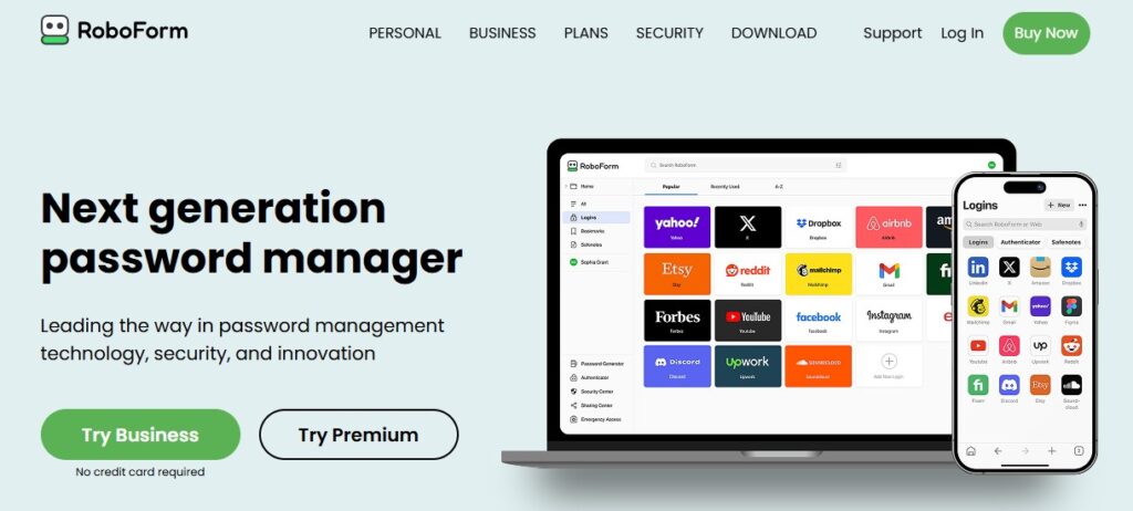 | RoboForm | Limited (single device, fewer features) | $1.99/month (Everywhere plan) | Unlimited (paid) | Yes | No dedicated dark web monitoring |