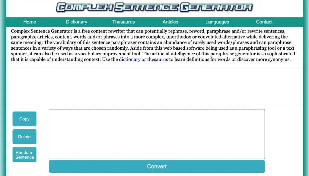 SEO Tools Centre provides a robust, complex sentence generator that helps users craft sophisticated and coherent sentences. Its best point is the intelligent sentence restructuring feature, which enhances the complexity and flow of the text, making it perfect for SEO professionals and writers. This tool ensures content is engaging and optimized for search engines, helping users achieve better visibility and impact.