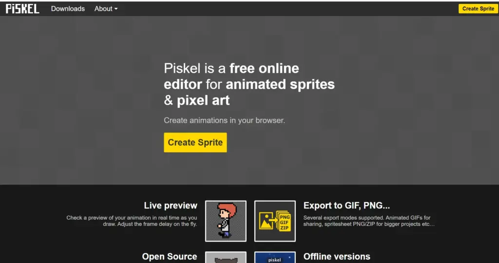 Piskel offers a straightforward and accessible approach to directly creating pixel art and animations in your browser. Its best feature is the live preview mode, which lets you see the animation in real time as you work. This is particularly helpful for animators and game developers looking to iterate on sprites and animations quickly.