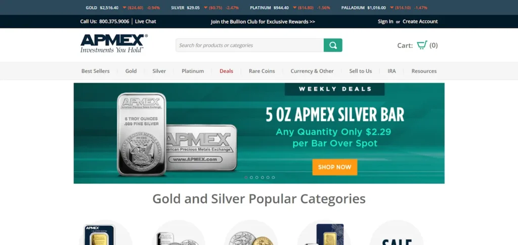 - Wide range of bullion products, including rare coins and exclusive APMEX items.