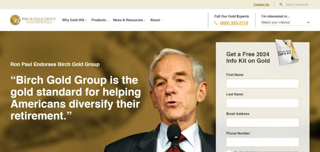 The company provides free information kits and personalized service. Birch Gold has served over 30,000 customers since 2003, building a solid reputation in the precious metals industry.