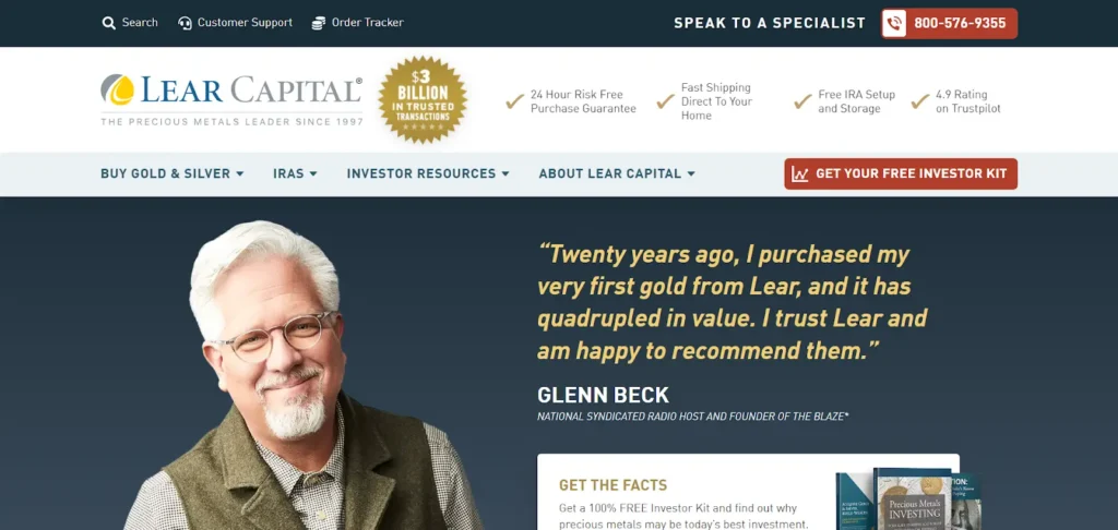 Lear Capital offers secure storage options and a risk-free purchase guarantee. Customers can buy gold bullion online easily. With over $3 billion in transactions, they are a leader in precious metals.